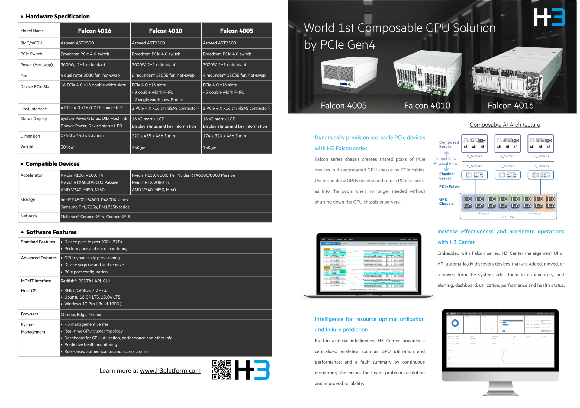 최대 4개의 호스트가 16개의 장치를 공유 할 수 있습니다. Falcon 4016 채택 시 설치시간만 하루를 절약할 수 있습니다. 워크스테이션간 자유로운 GPU 장착이 가능하며 리소스는 적재적소에 재분배됩니다. IT 관리자는 Falcon 솔루션의 쉽고 스마트한 편의성을 체감할 수 있습니다. 일관된 하드웨어 및 소프트웨어 솔루션을 사용하면 구성 요소에 시간을 소비하는 대신 더 중요한 곳에 시간을 더 많이 할애 할 수 있습니다.